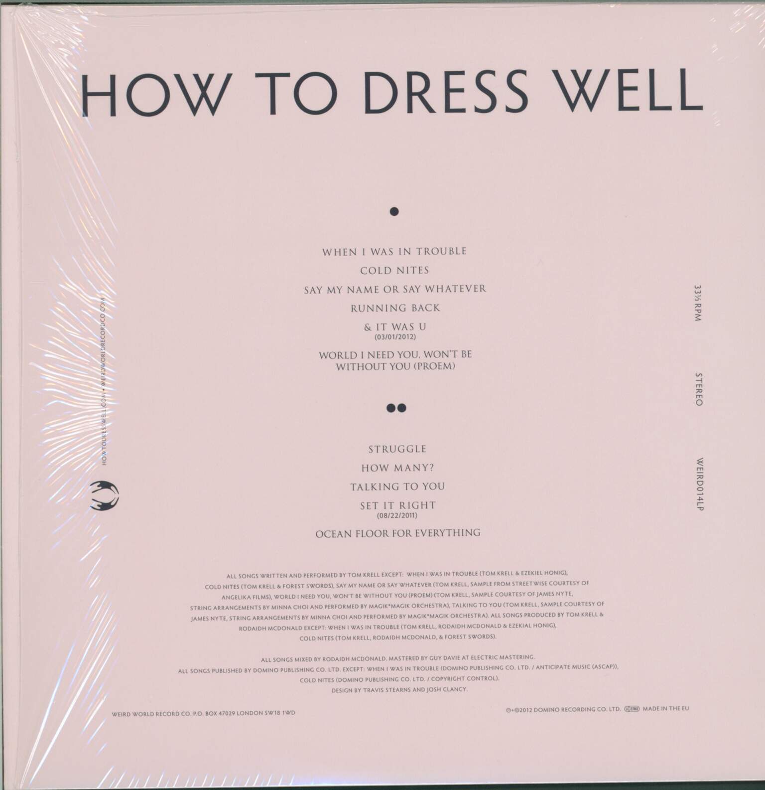 Producer – Ezekiel Honig (tracks: A1), Forest Swords (tracks: A2), Rodaidh McDonald, Tom Krell