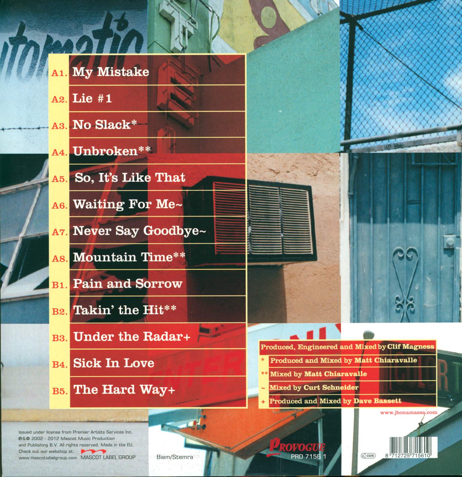 Mixed By – Clif Magness (tracks: A1, A5, B1, B4), Curt Schneider (tracks: A7), Matt Chiaravalle (tracks: A3, A4, A8, B2)