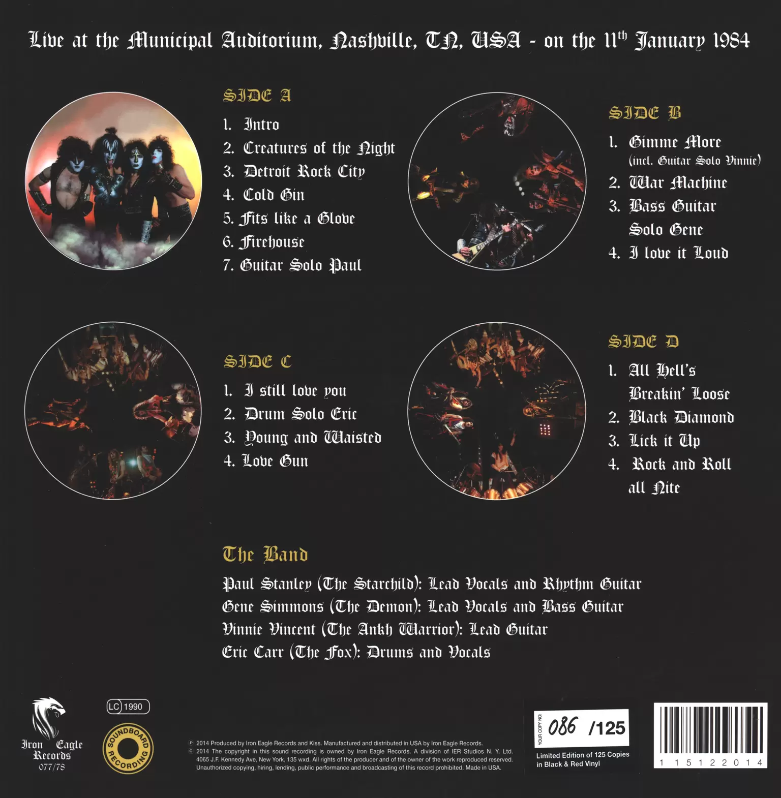 1 x LP VinylLive at the Municipal Auditorium, Nashville, TN, USA on the 11th January 1984