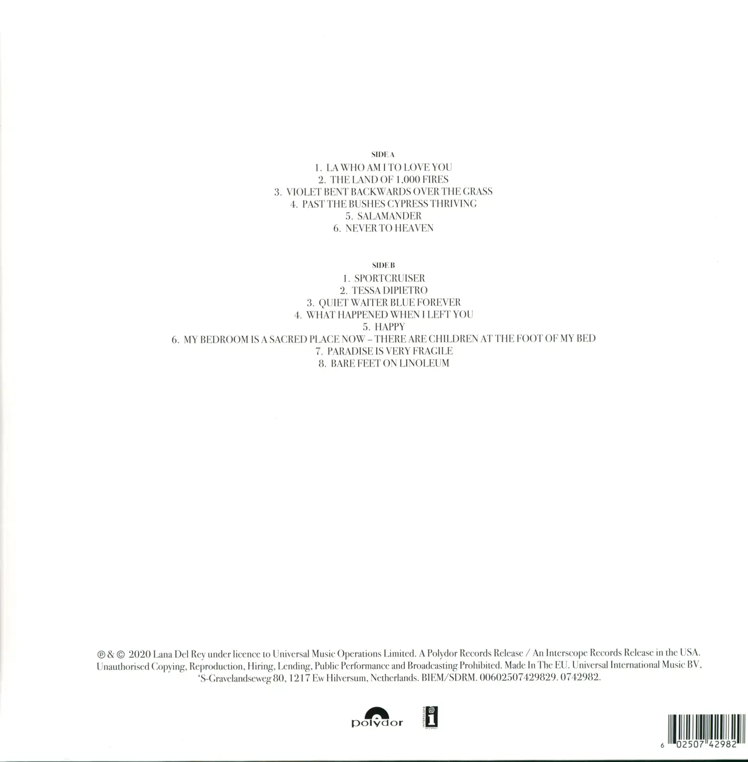 1 x LP VinylViolet Bent Backwards Over The Grass