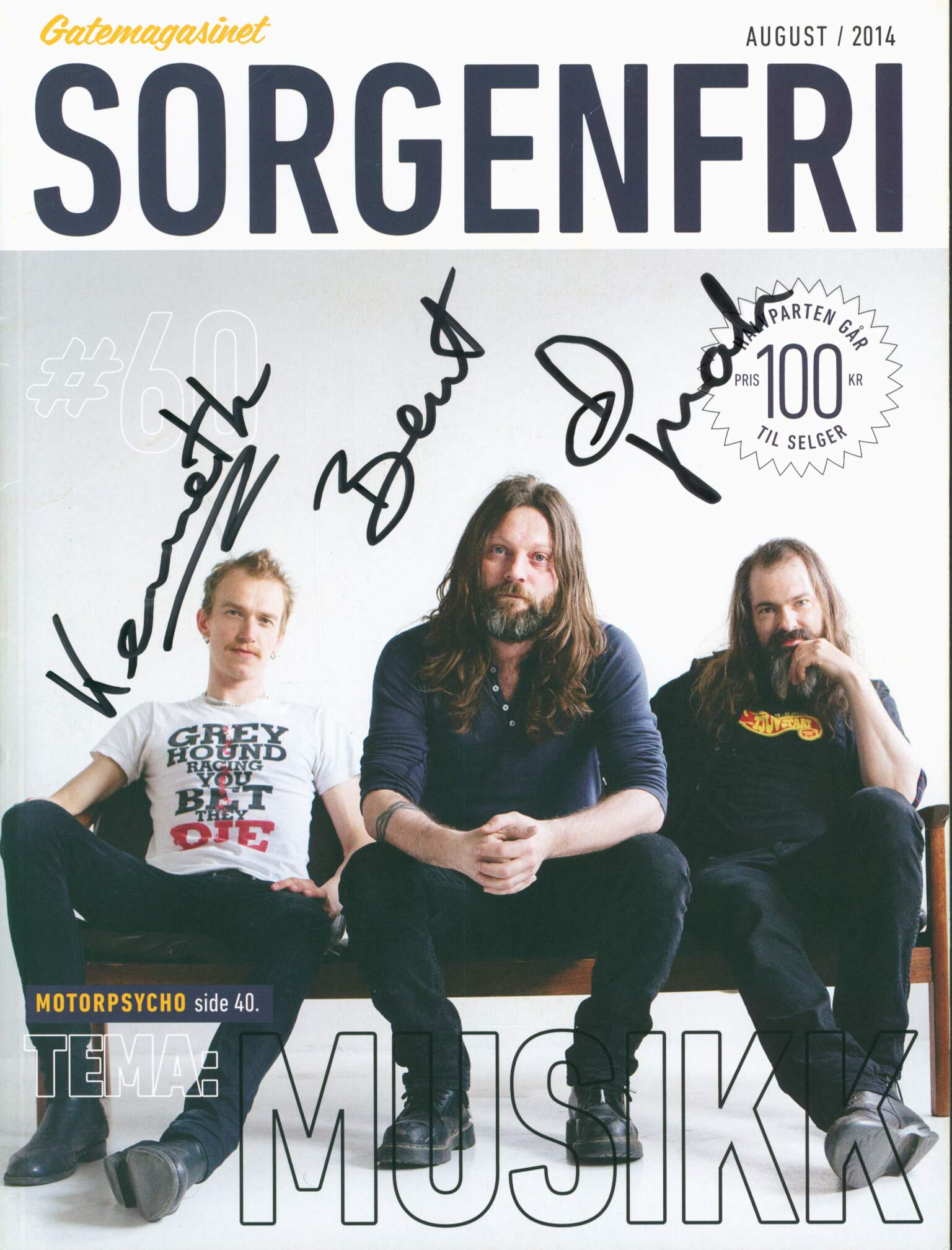 minor surface marks on vinyl, magazine is signed by the whole band
