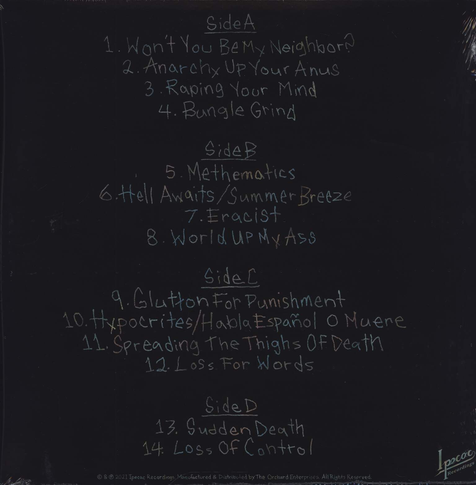 | A2 | Anarchy Up Your Anus | 2:18 |