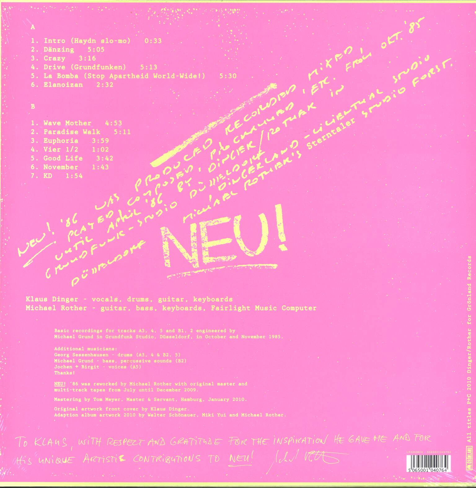 Vocals, Drums, Guitar, Keyboards, Artwork, Cover [Original artwork front cover] – Klaus Dinger
