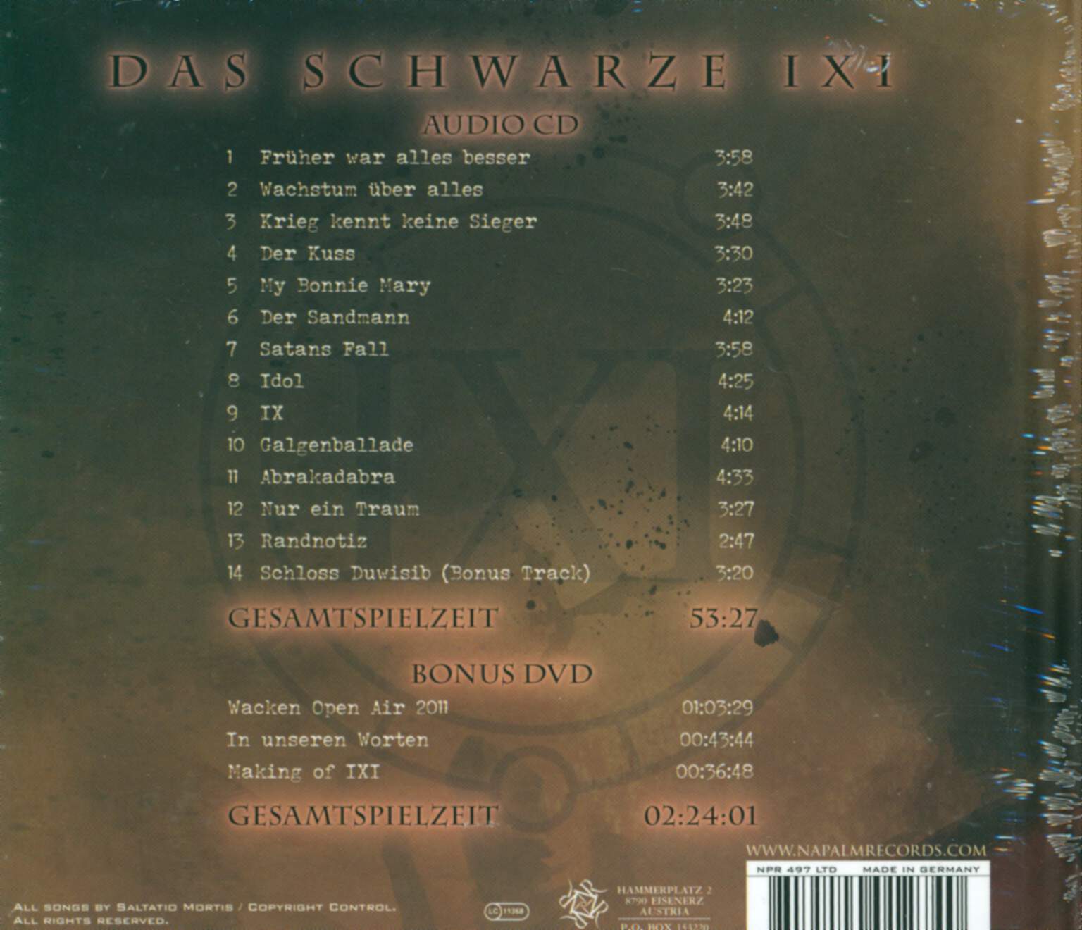Hersteller: Napalm Records Handels GmbH, Hammerplatz 2, 8790 Eisenerz, Austria, [email protected]