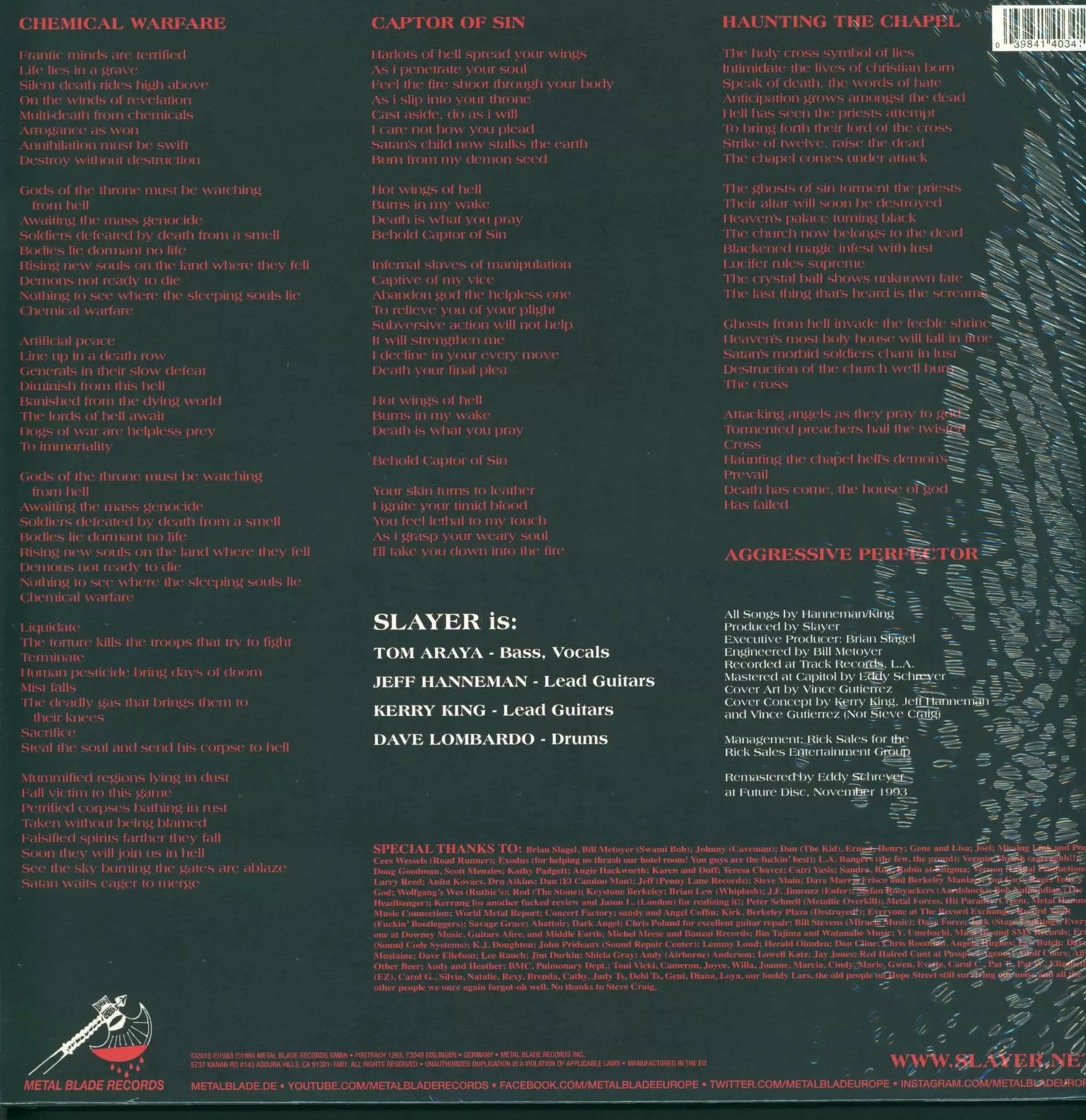 Songwriter [All Songs By] – Jeff Hanneman