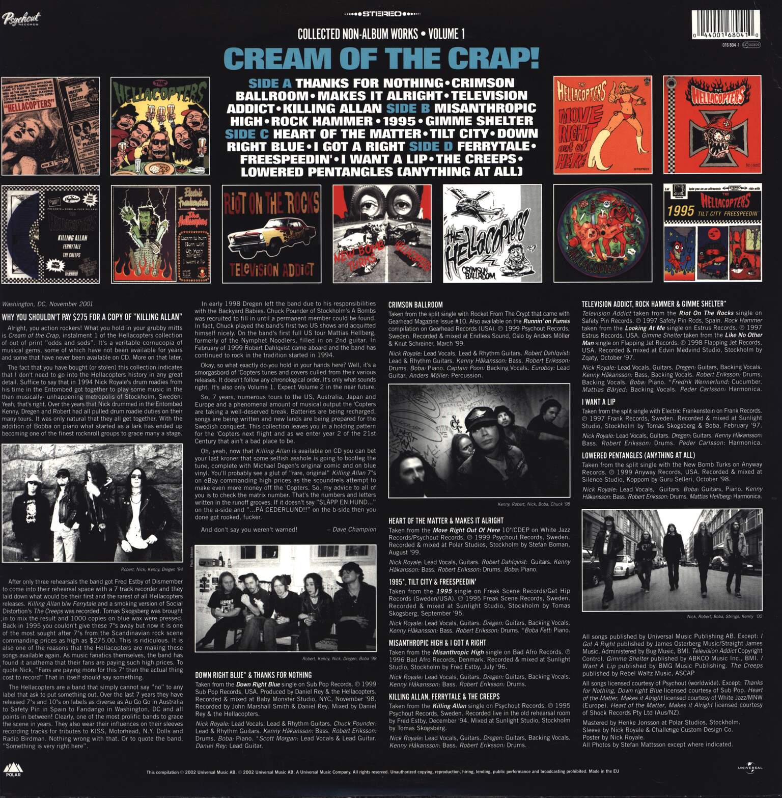 Written-By – Andersson* (tracks: A1 to A3, C1, C3, D5), The Hellacopters (tracks: A5 to B3, C2, D1, D2)