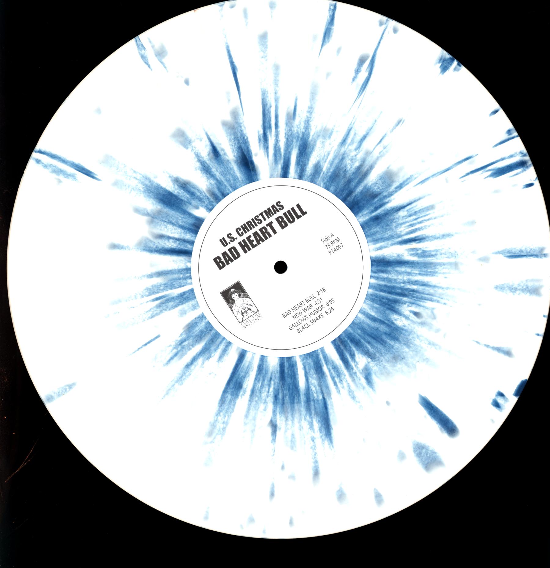 Limited edition of 70 copies on bone vinyl with blue splatter.