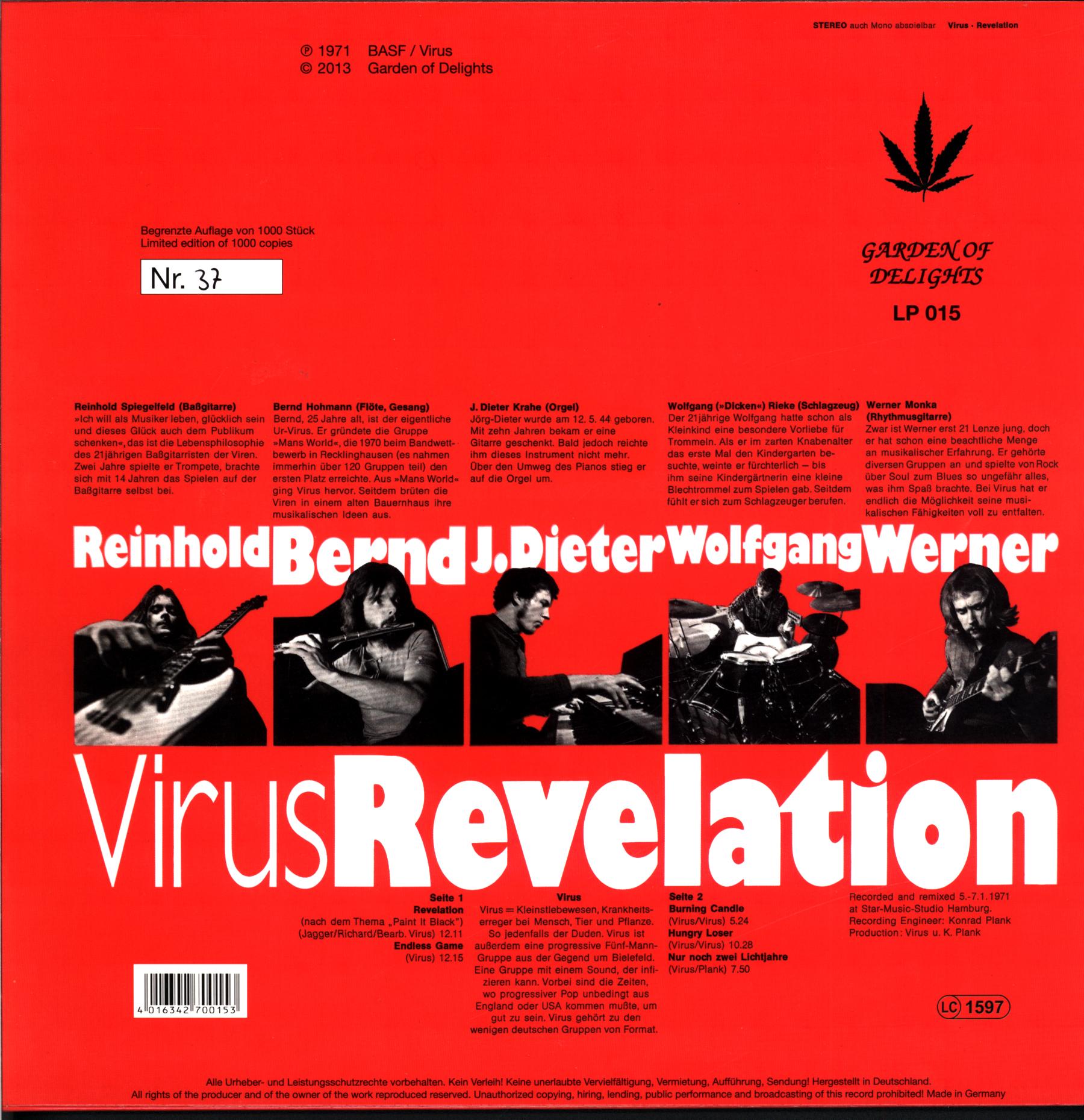 Limited hand numbered edition of 1000 copies (this is #37), includes booklet. Reissue, originally released in 1971.