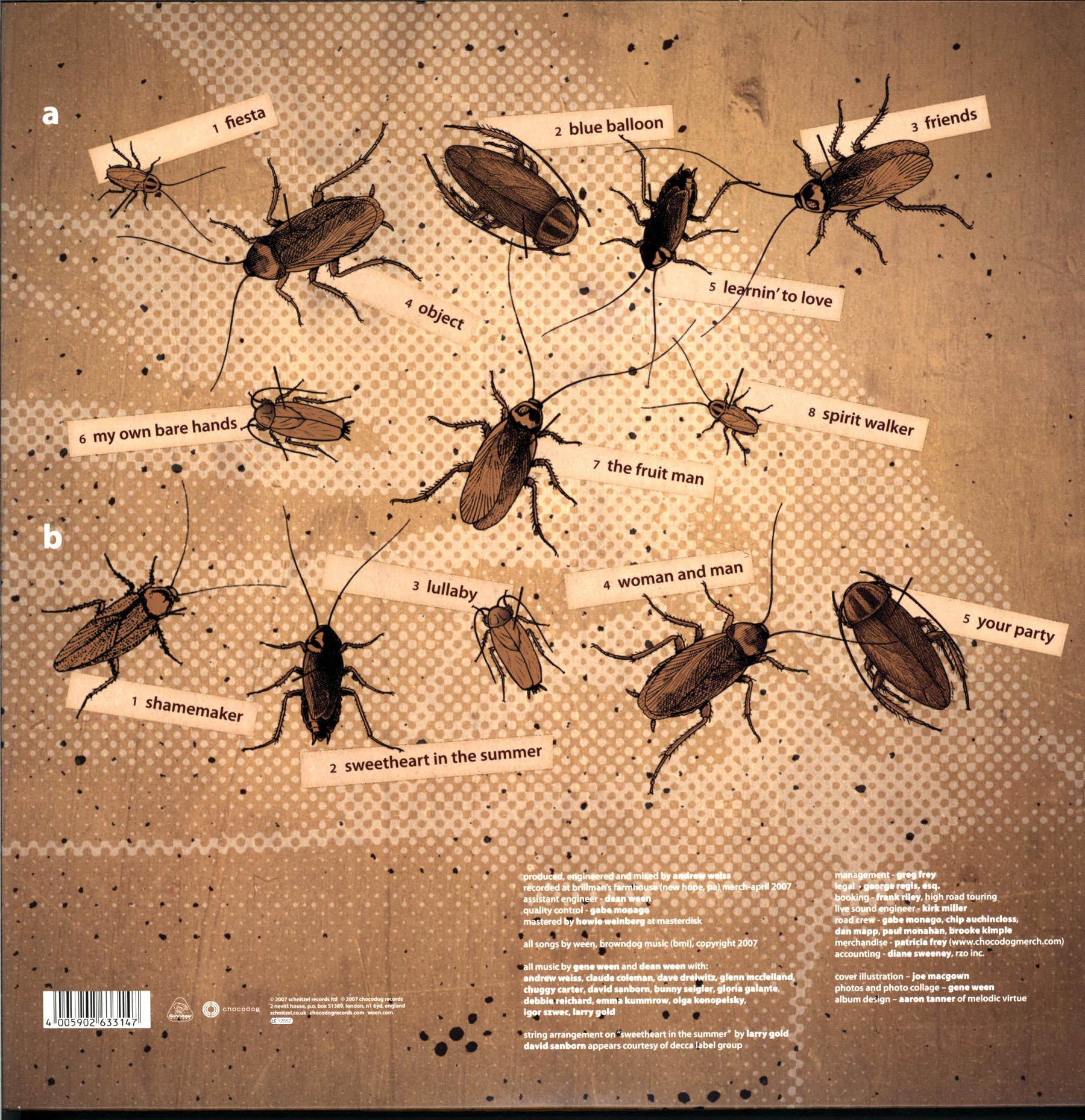 Gatefold sleeve, includes cockroach sticker and black die cut inner sleeve.