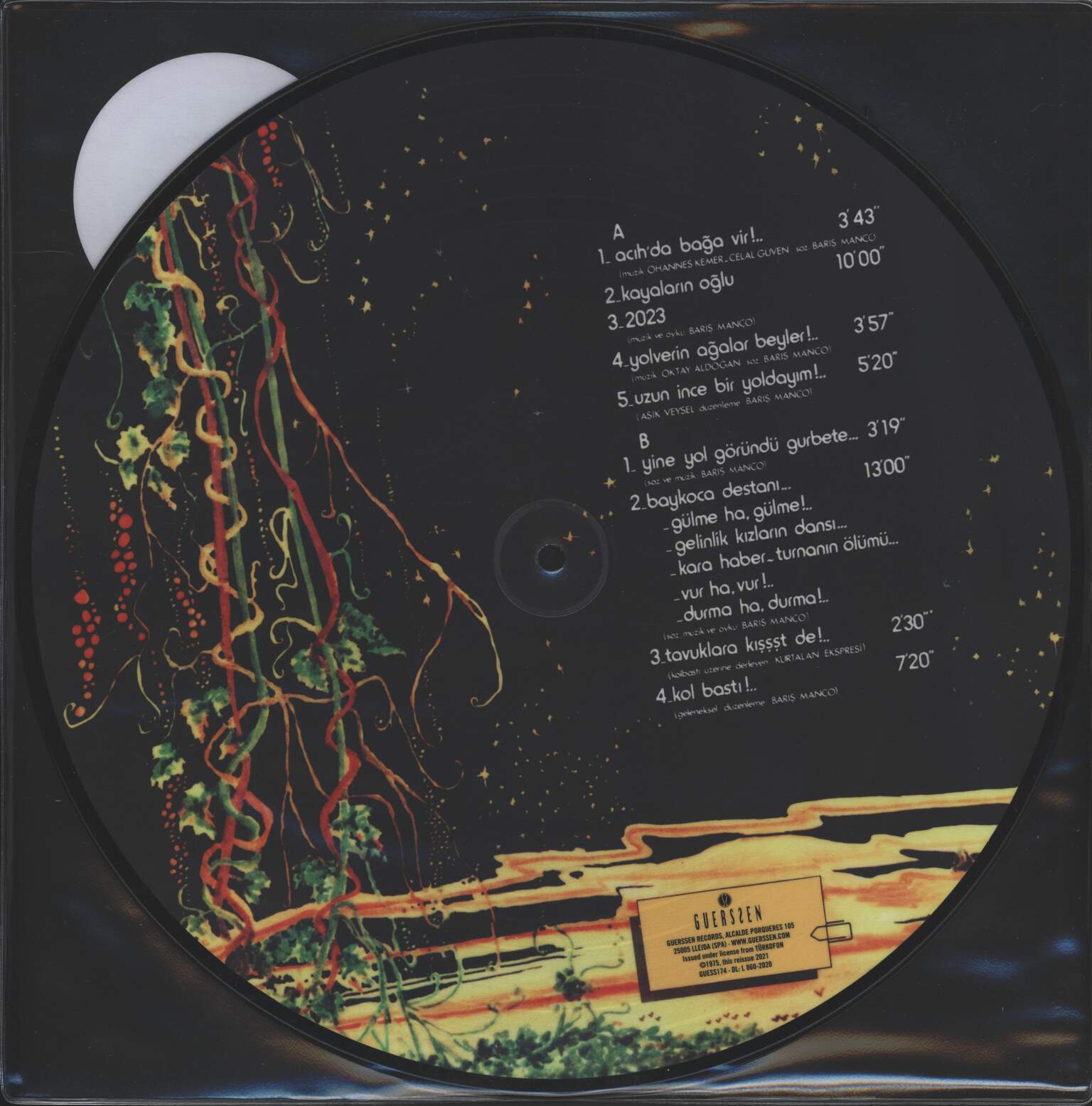 picture disc, limited to 500 numbered copies, reissue of 1975 Turkish Psych/Folk album, comes in stickered transparent PVC sleeve