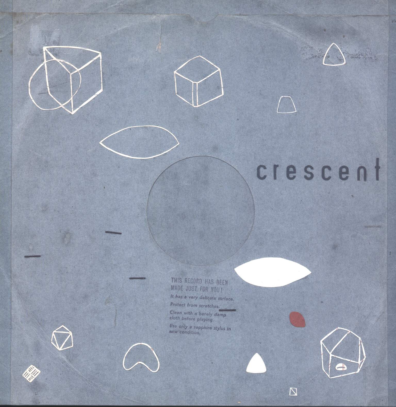 minor cover variation: vinyl care instructions printed/stamped on front sleeve below "This record has been made just for you"