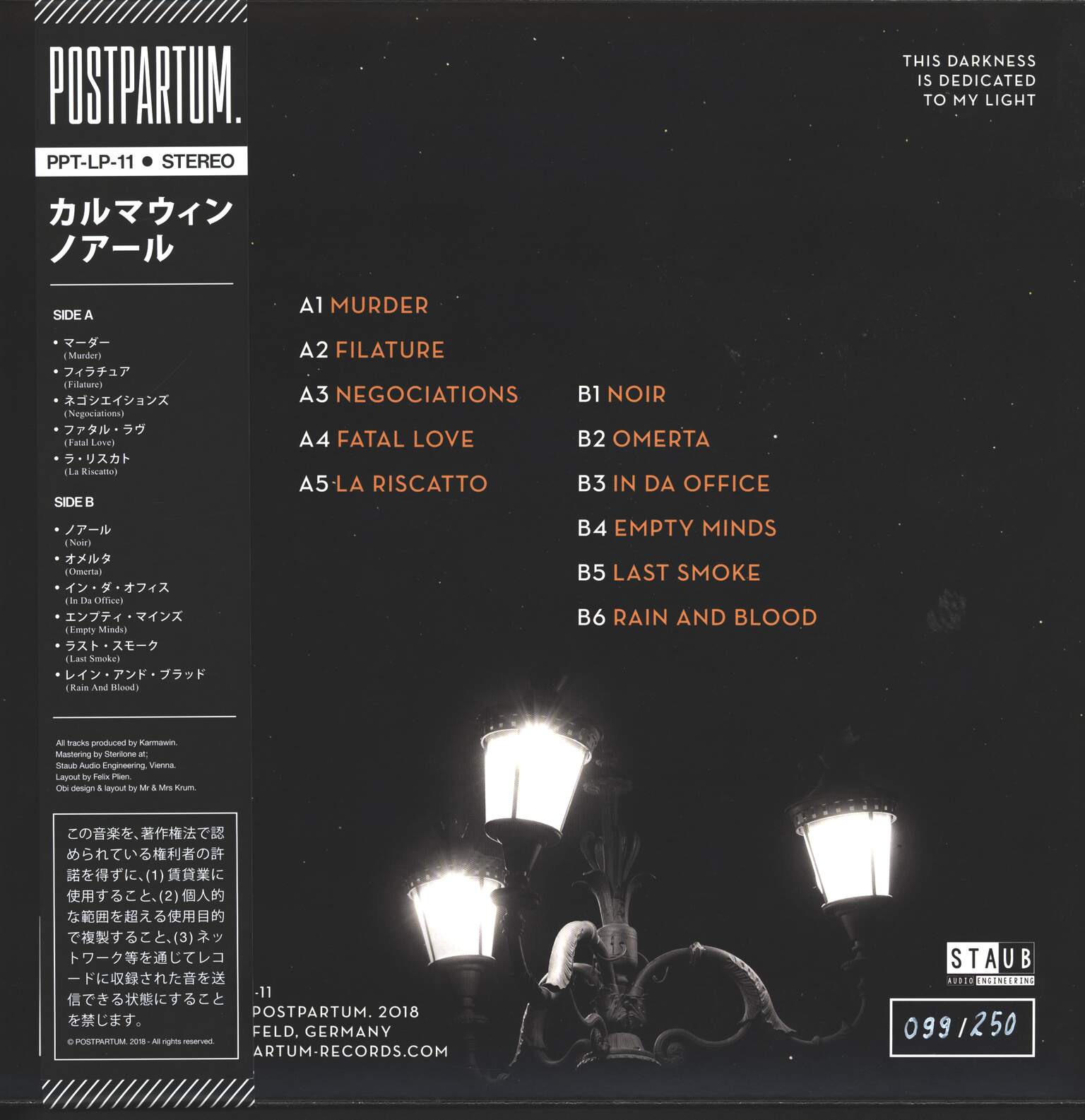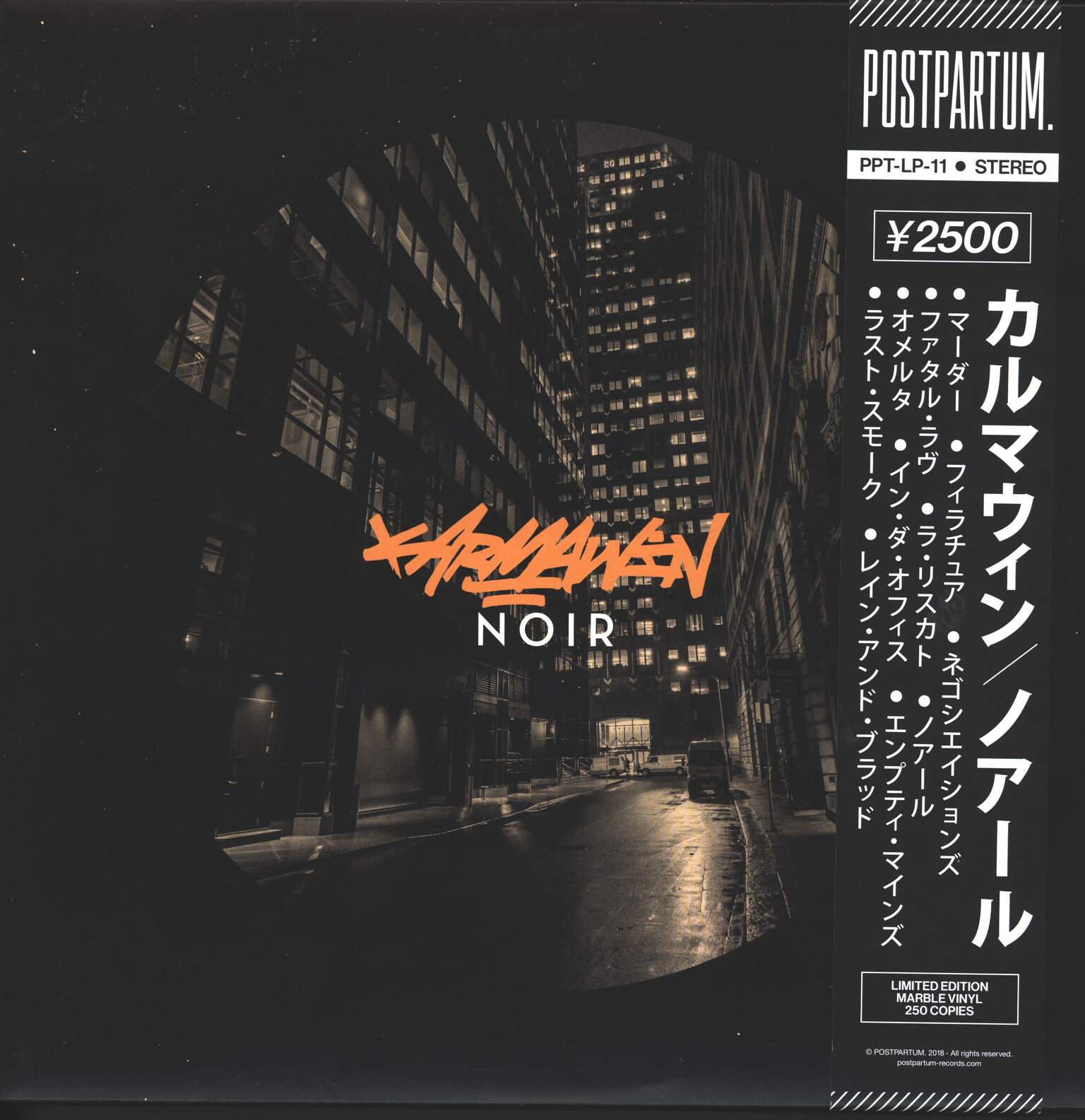 limited edition of 250 numbered copies on orange/black marbled vinyl, comes with "obi" strip