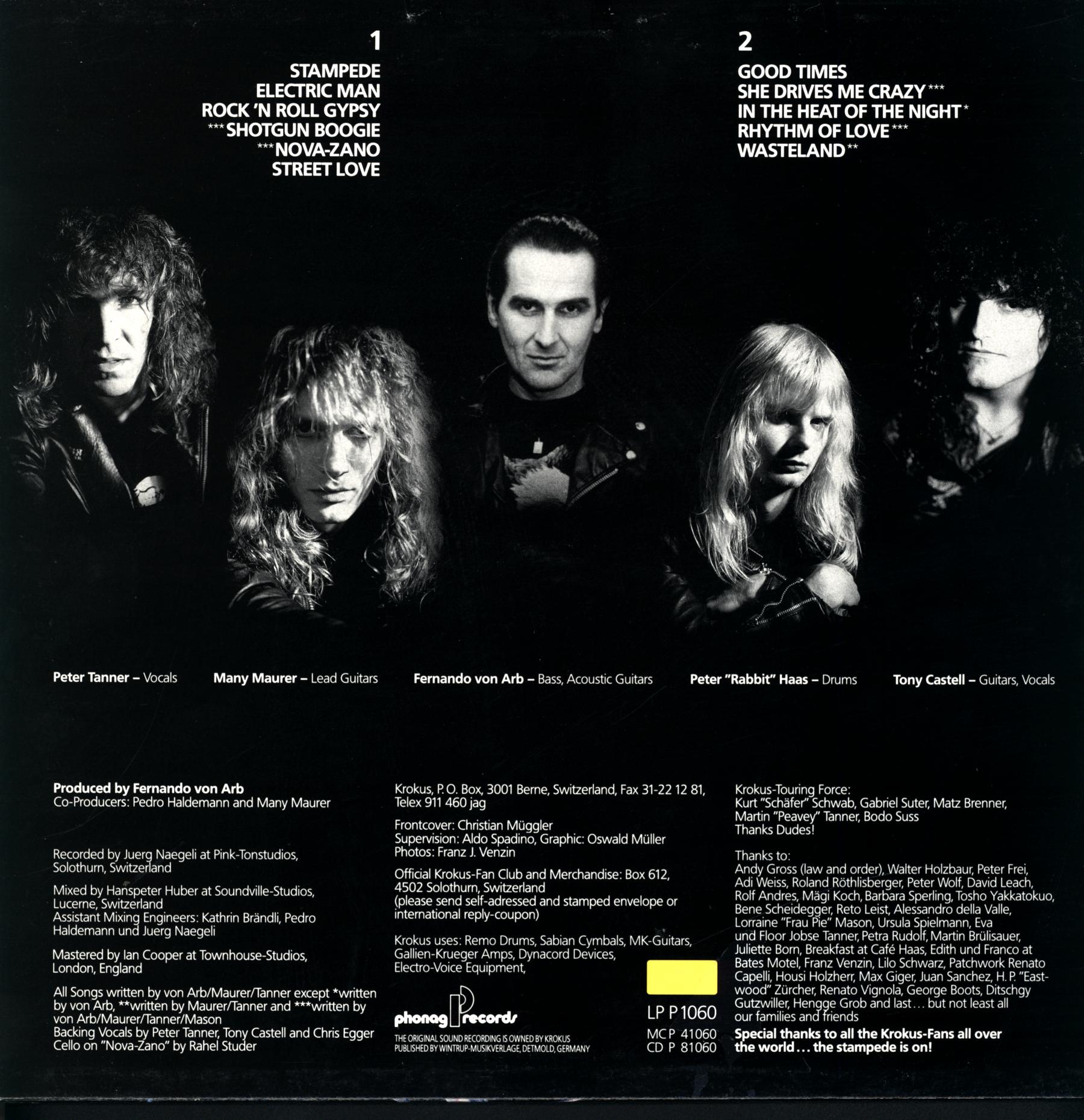Crew [Krokus Touring Force] – Bodo Suss (2), Gabriel Suter, Kurt ” Schäfer” Schwab*, Martin “Peavey” Tanner*, Matz Brenner