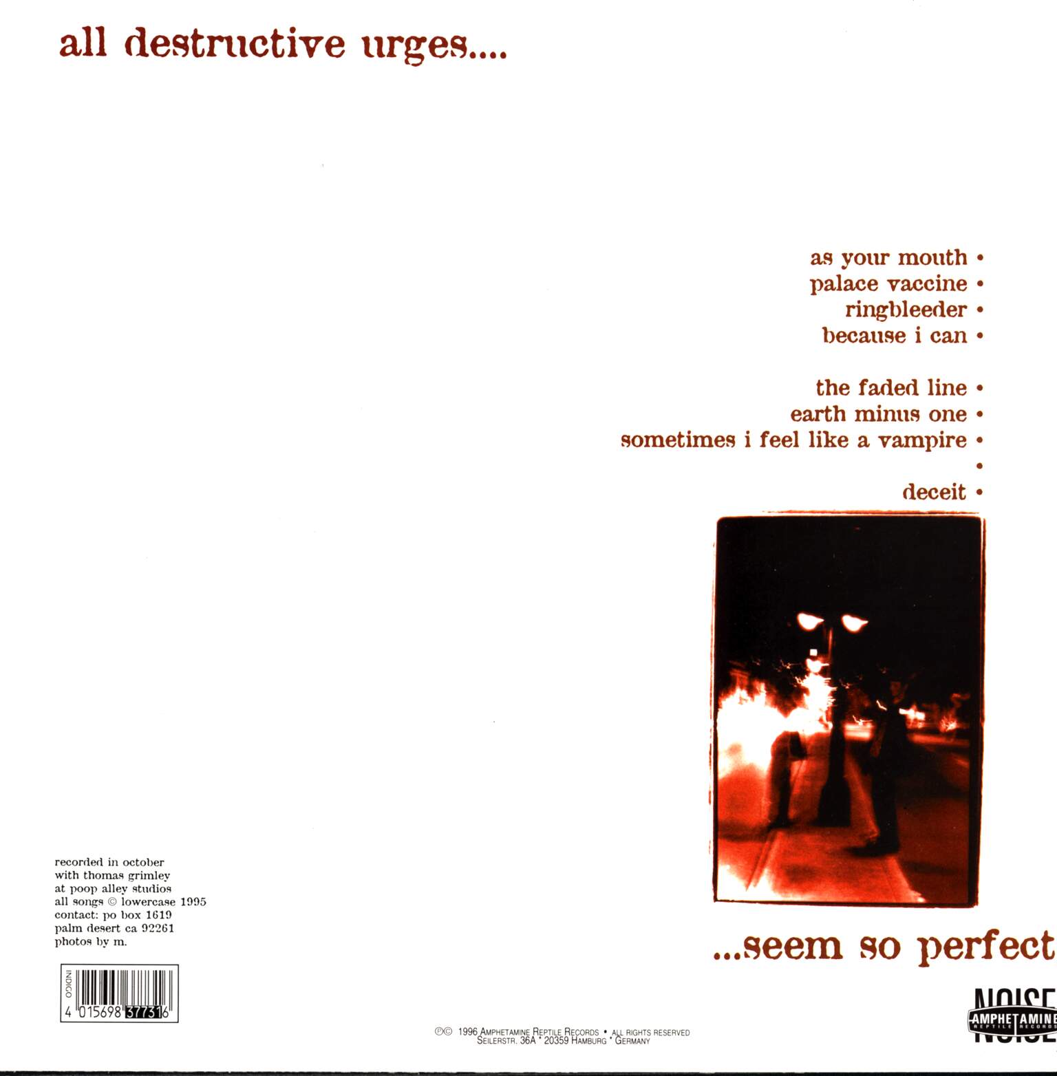 1 x LP VinylAll Destructive Urges......Seem So Perfect