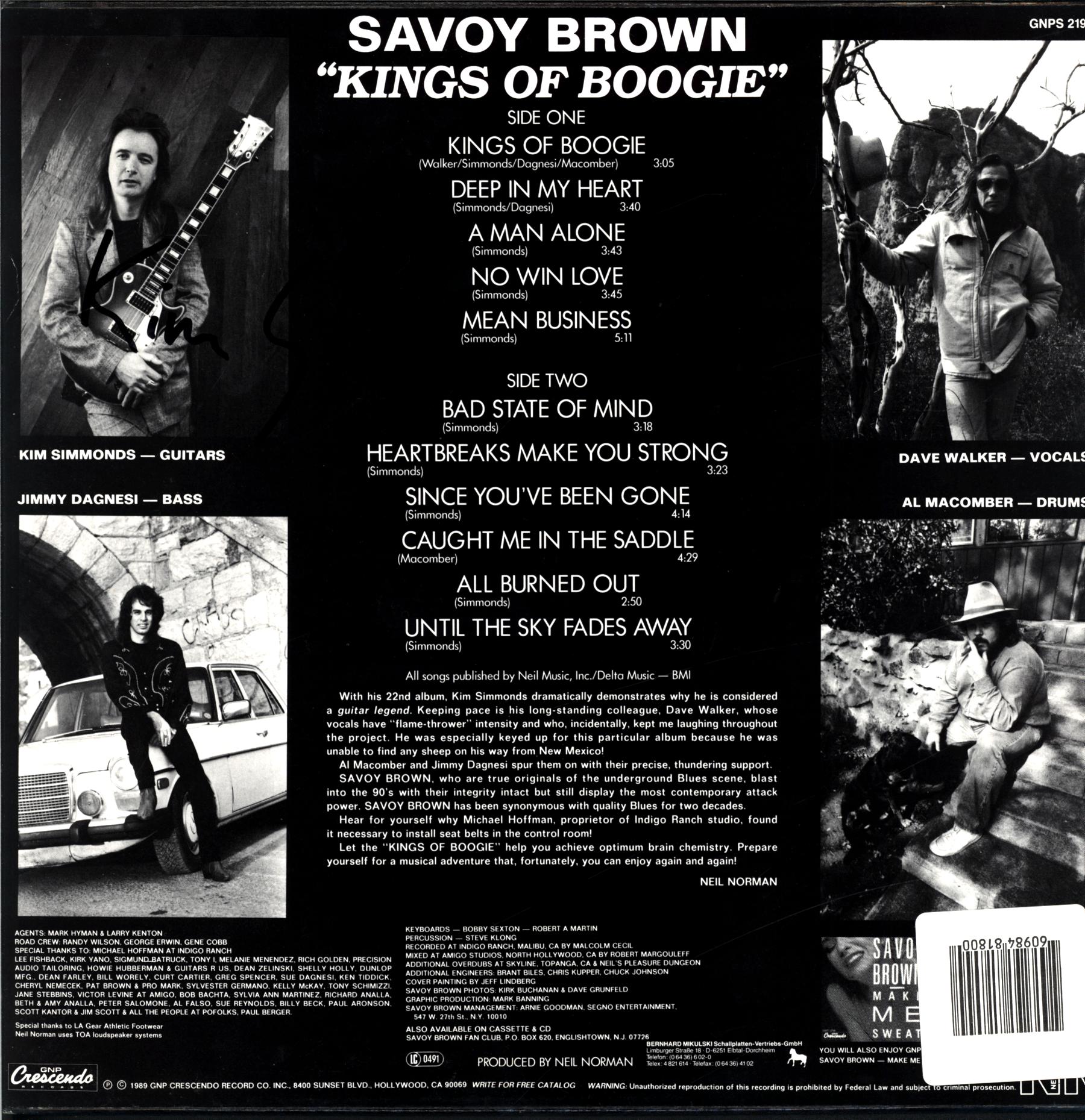 Back sleeve signed by Kim Simmonds.